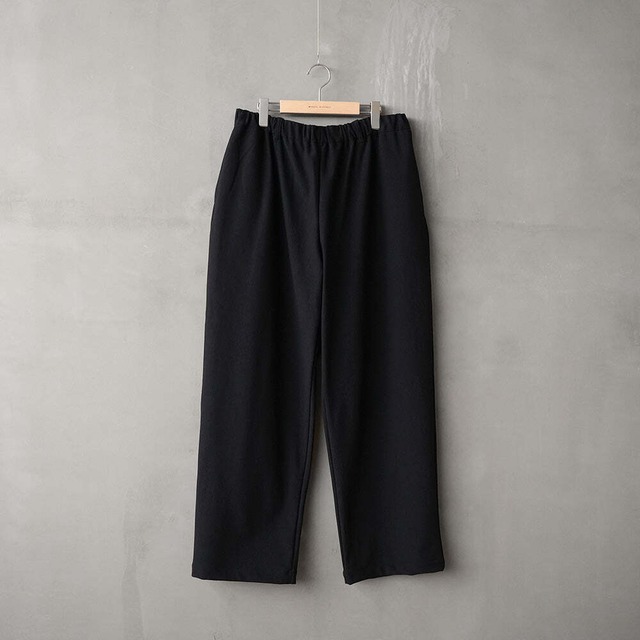 NEP SWEAT DOUBLE KNEE PAINTER WIDE PANTS ¥36,000-+tax 素材:cotton 100% 素材にはネップ感のある裏毛生地を使用。 適度なラフさと表面感、肉感が特徴的な素材となります。 シルエットはワイドペインターパンツ仕様。 F25W03009と近いシルエットとなります。 スウェットパンツでここまでしっかり作り込んだペインターパンツはあまり見ないかと思います。縫製先もカットソー素材だが布帛工場にお願いをし作成しております。 ウエストは平ゴム入りのイージータイプ。フロントファスナー開きあり、 裾先は断ち切りにしているのでお好みの丈感でカットしてもらってレングスを調整できます。見た目はとは裏腹にスウェットのラフ感が着用した際に感じられる1枚となっております。着用を繰り返して色褪せてきた感じもかっこいいかと思います。 サイズ 1 2 ウエスト 72〜82 75〜85 モモ幅 36 36 股下 69.5 74 股上 36 36 裾幅 27 28