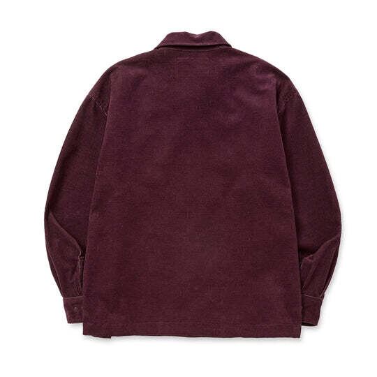 コーデュロイシャツジャケット。14W T/C双糸コーデュロイを採用。畝とベースの色を変える事により、奥行きのあるムラ感が特徴。スナップボタン仕様、ボックスシルエット。