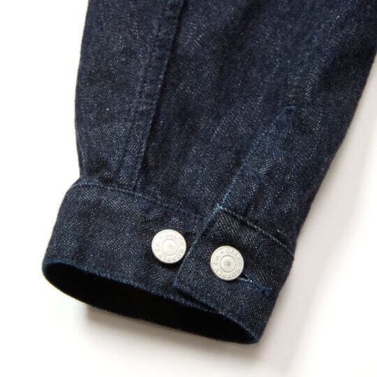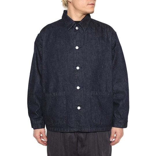 デニムカバーオール。単一米綿を使用した、ピュアインディゴの11.5ozヴィンテージリプロデニム生地を採用。毛焼きなしのサンフォライズ加工仕上げで、表面に生機の様な毛羽感があるのが特徴で、米綿特有のムラ感と、ドライタッチでガサついた粗野な風合い。ボックスシルエット、ワンウォッシュ仕上げ。内側にプリントが入る。