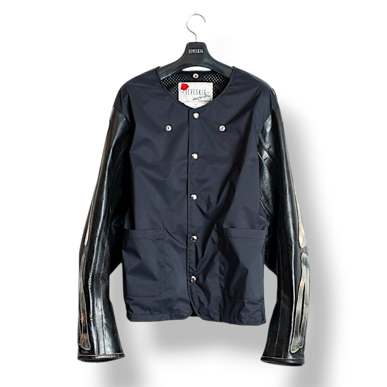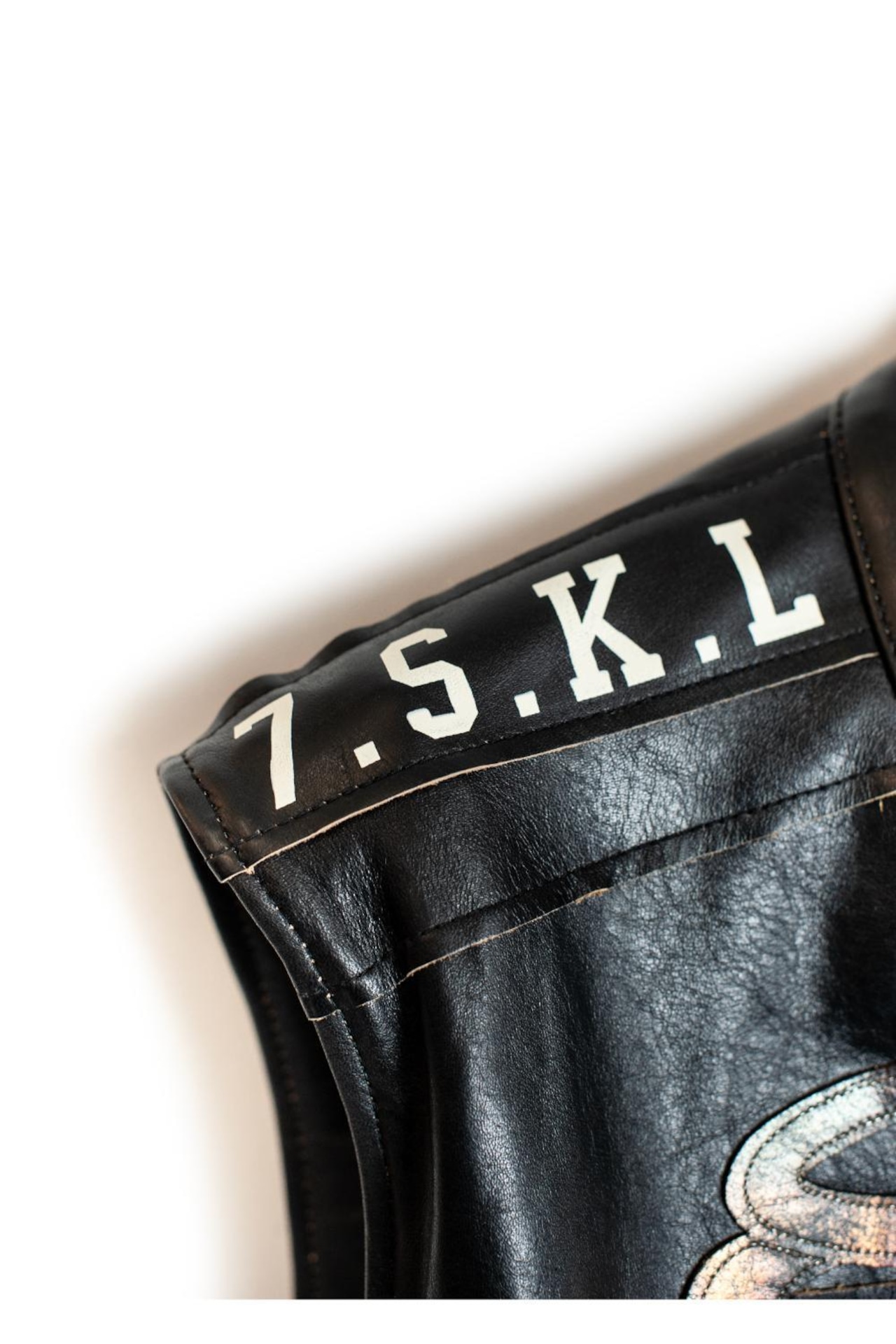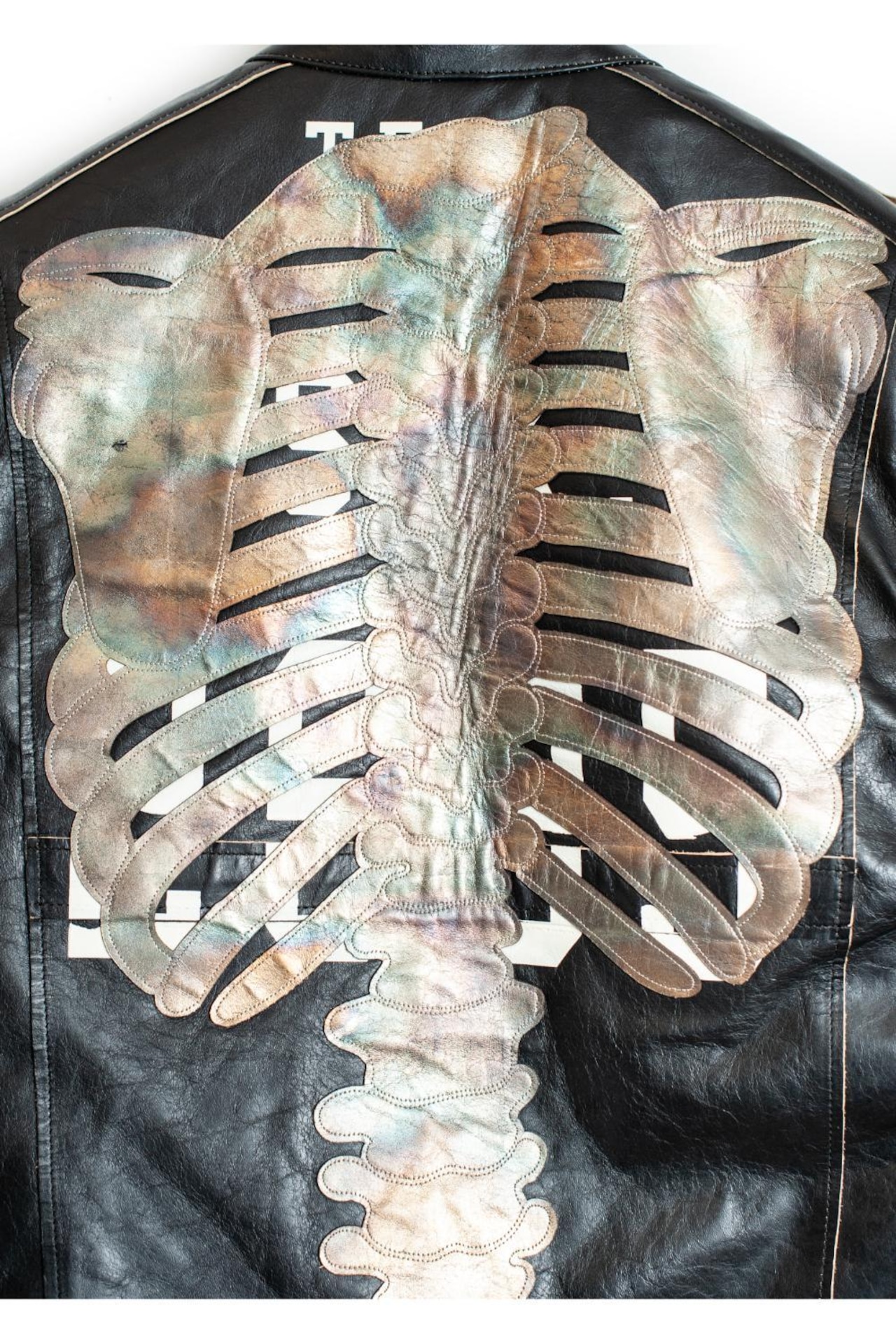 SEVESKIGを象徴する“骨”モチーフを、京都・伊根で加工した本銀箔で全面にあしらったレーシングジャケット。