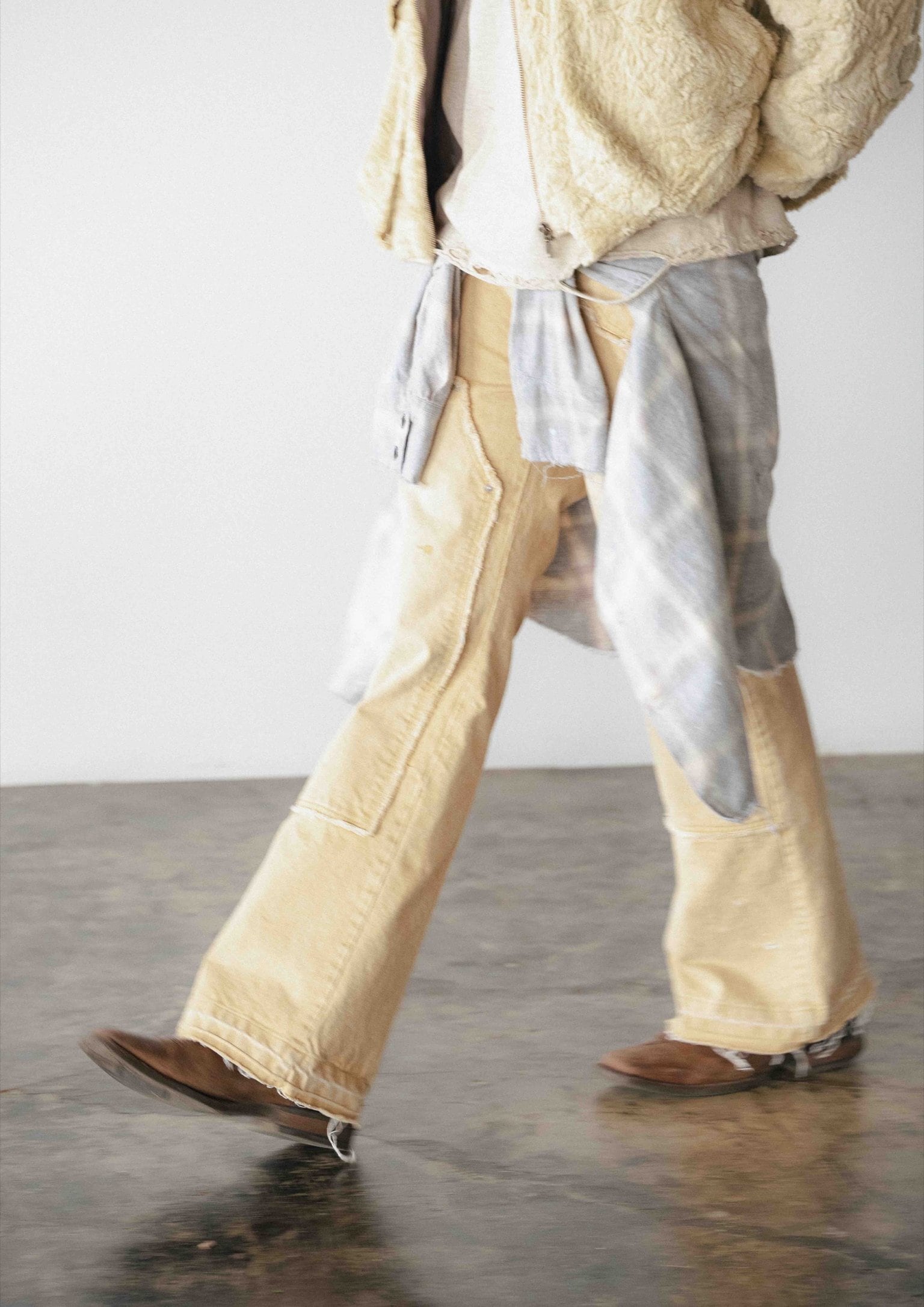 加工には職人さんが1点1点バランスを見て色が抜けすぎないように絶妙なバランスでハンドブリーチを施した後にまた1点1点手作業による汚し作業を入れている手間のかかる1点になります。