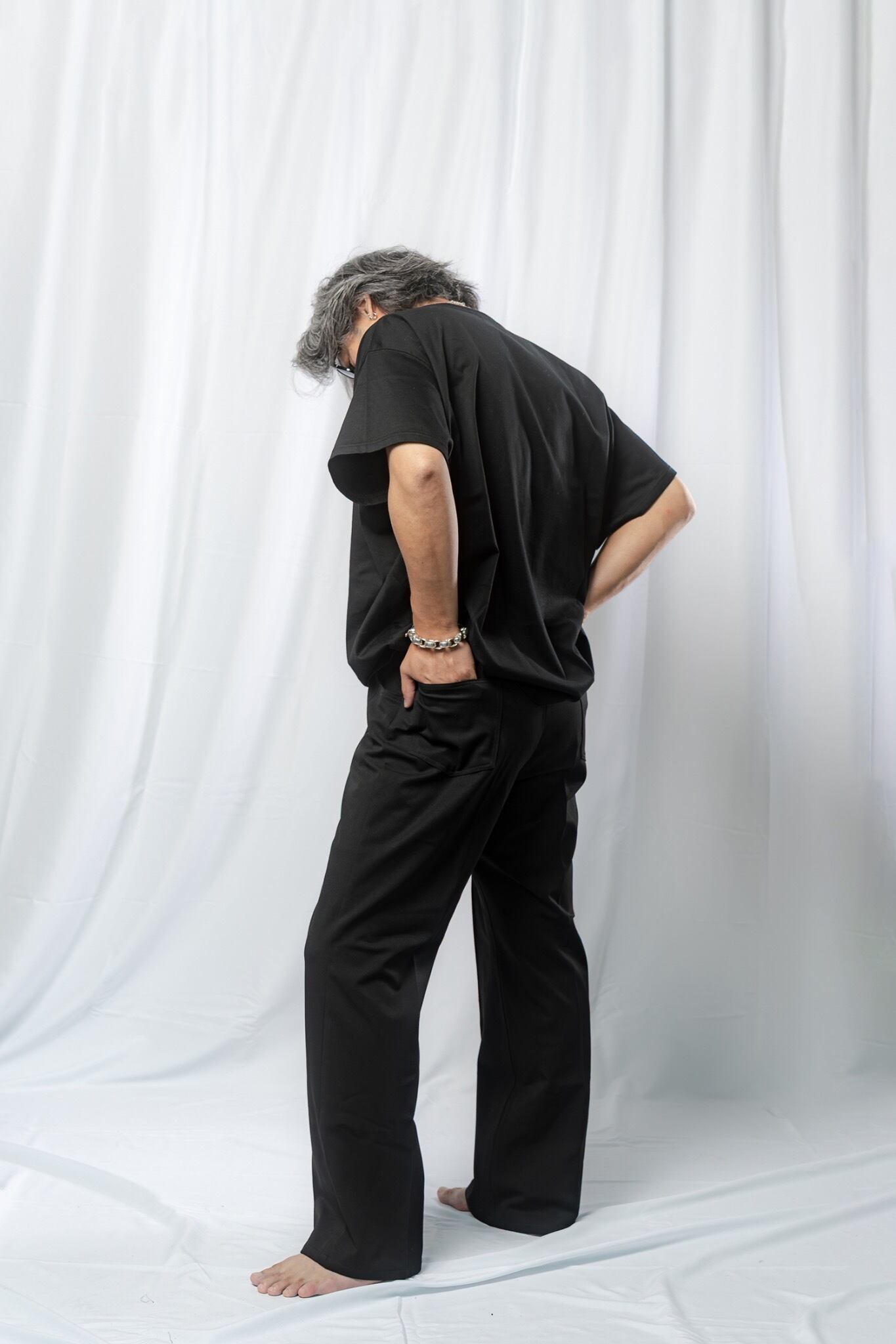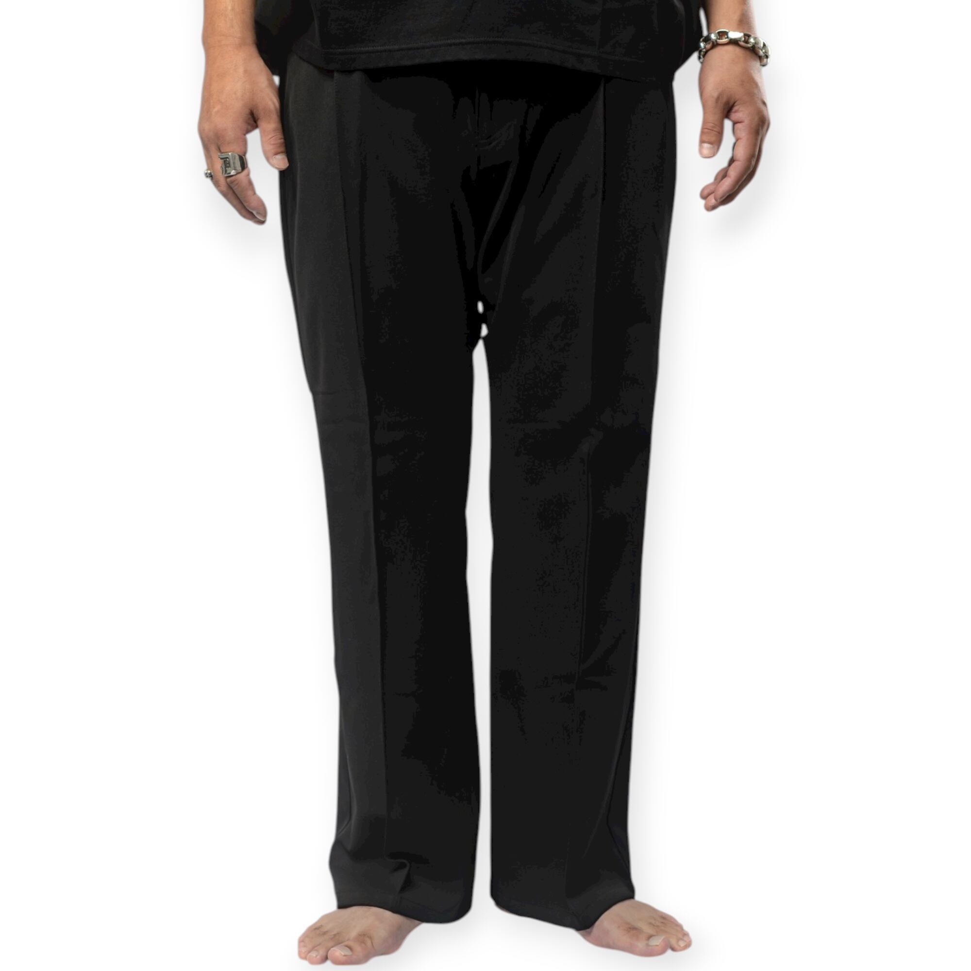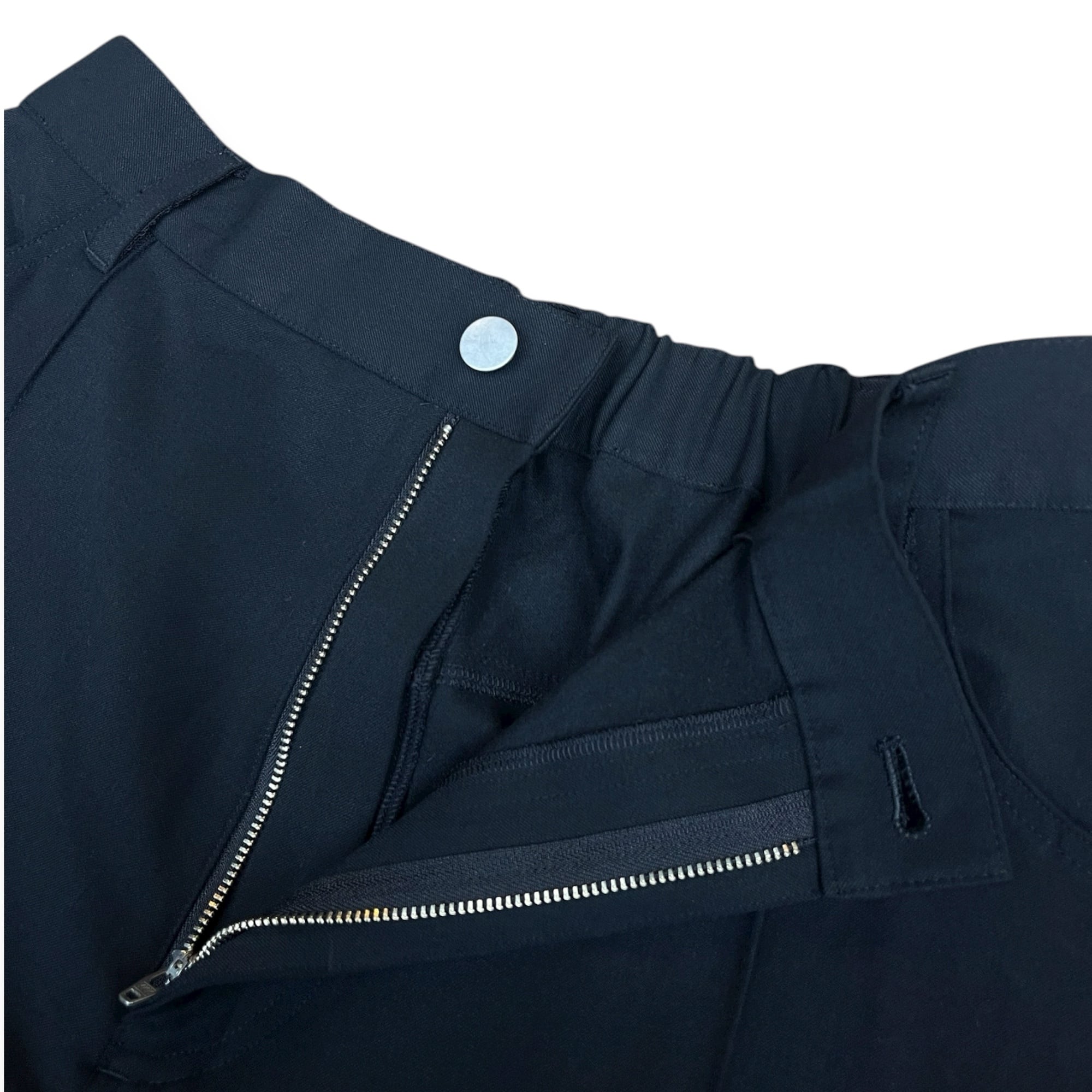ウエストにはゴムが仕込まれているのでお腹の張りを軽減しており、センタープリーツは縫いで入れてあるので脚を真っ直ぐ美脚なシルエットを継続し続けてくれます。