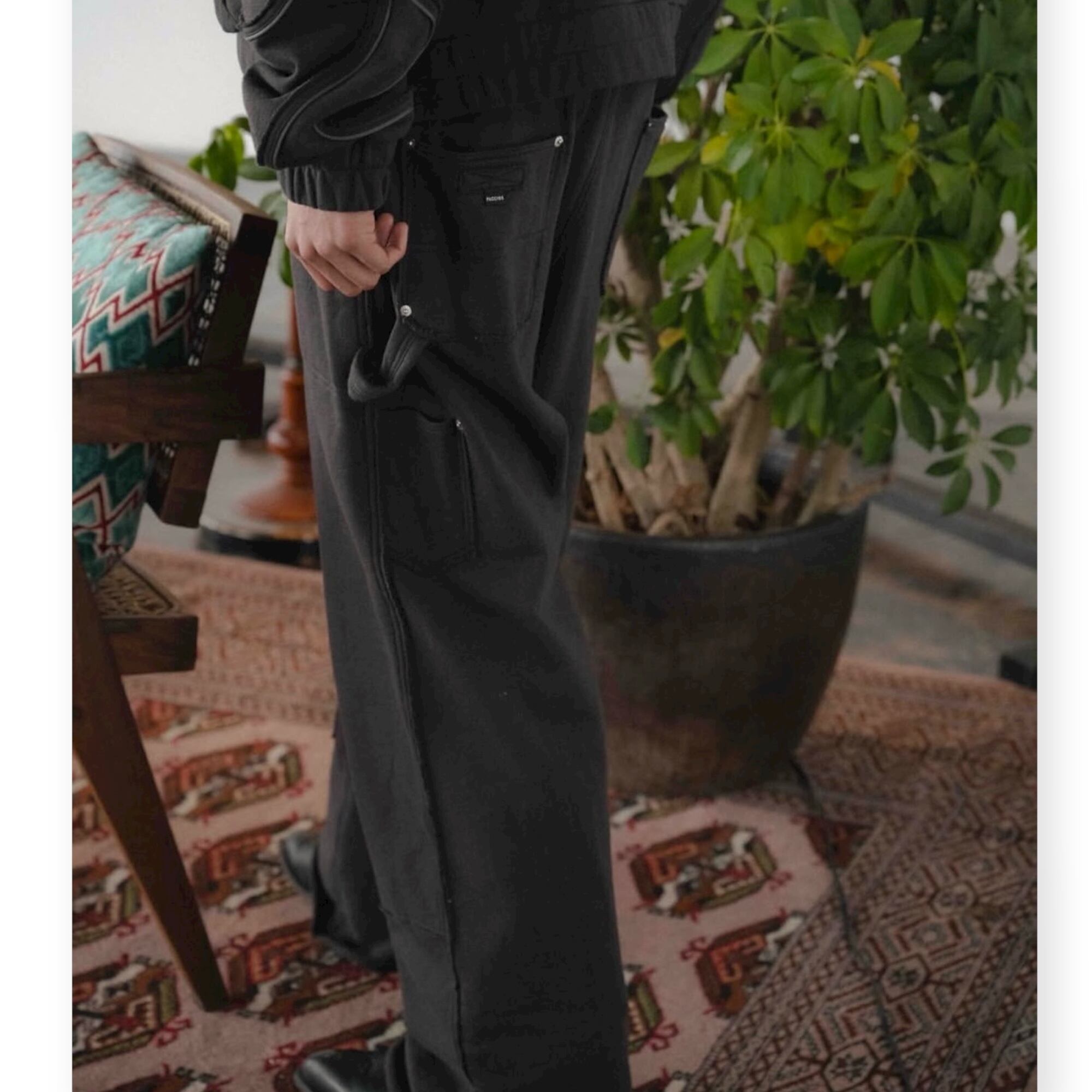 スウェットパンツでここまでしっかり作り込んだペインターパンツはあまり見ないかと思います。縫製先もカットソー素材だが布帛工場にお願いをし作成しております。