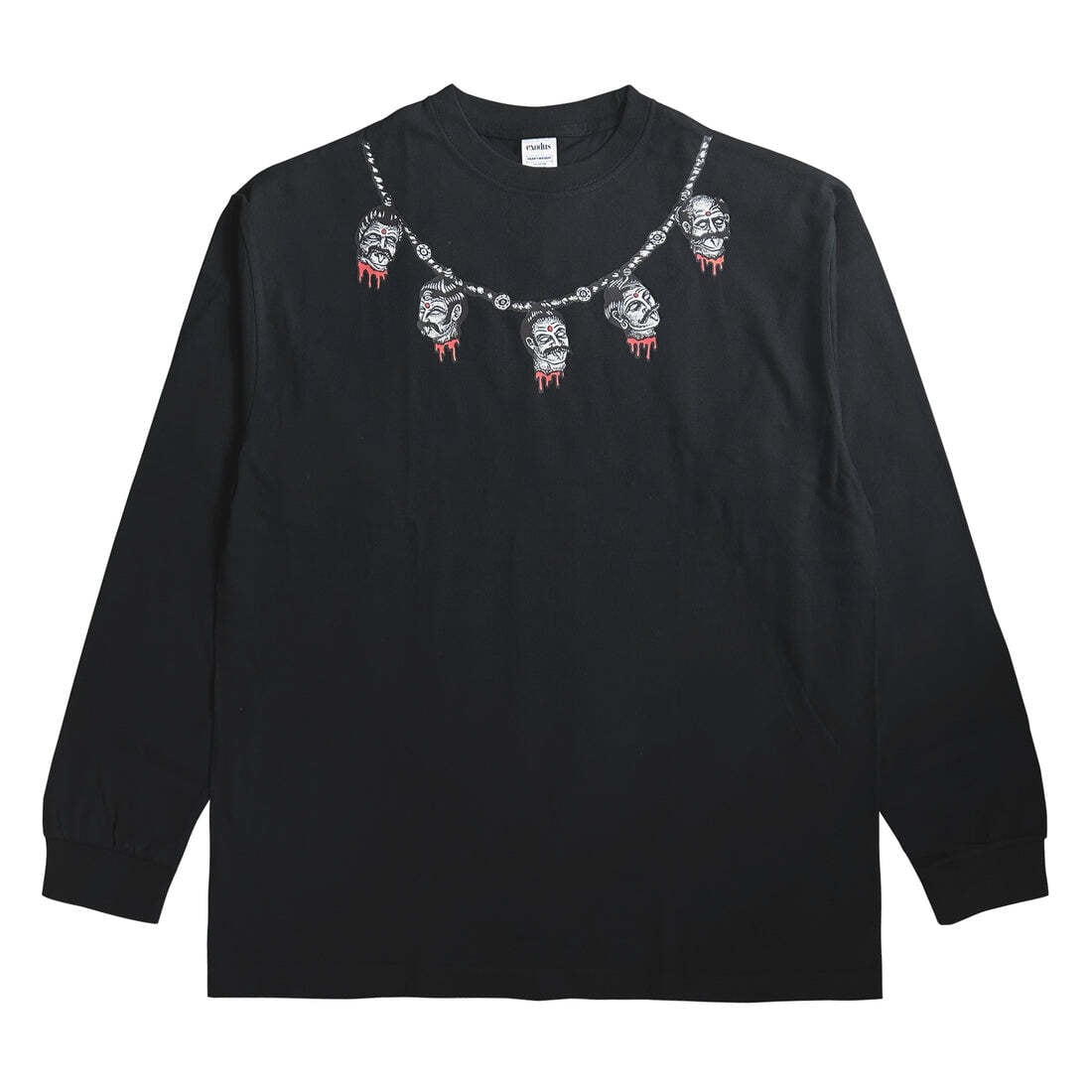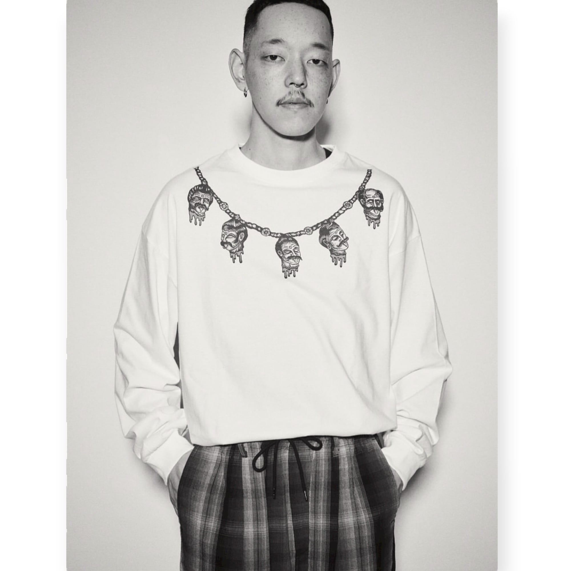 丸胴ボディーを使用したカーリー・マーのネックレスプリント。