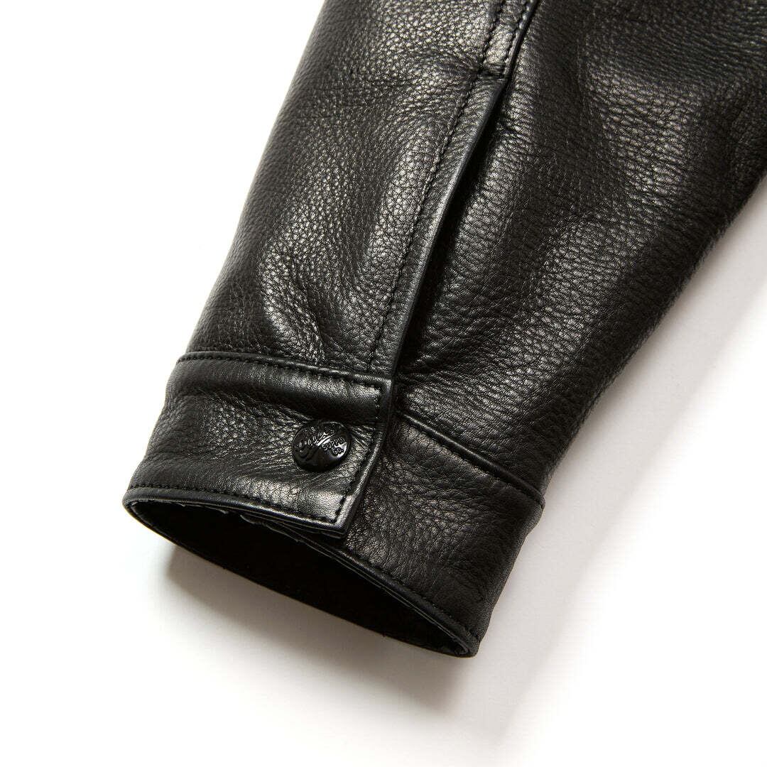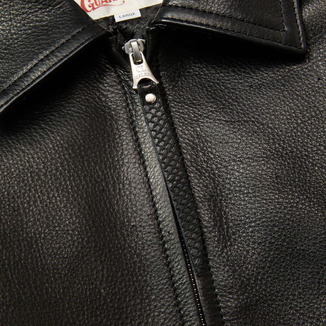 レザースウィングトップ。国産の牛革、クロームレザーを使用した国内生産のレザージャケット。裏地はオリジナルペイズリー柄の中綿キルト、襟裏、袖裏、引き手に蛇革を使用。