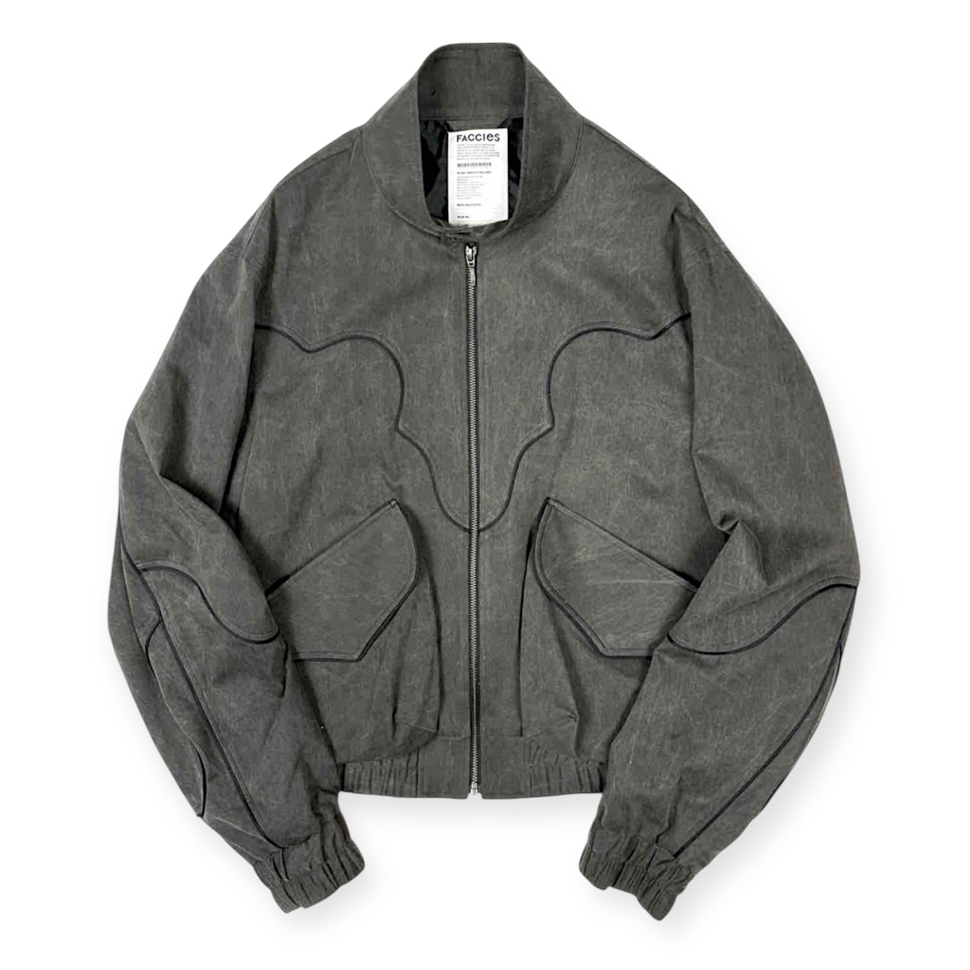 シルエットはFACCIESのシグネーチャーでもあるウエスタン調パイピングがアクセントのブルゾン型となっており、ポケットは大ぶりのマチつきフラップポケット仕様。