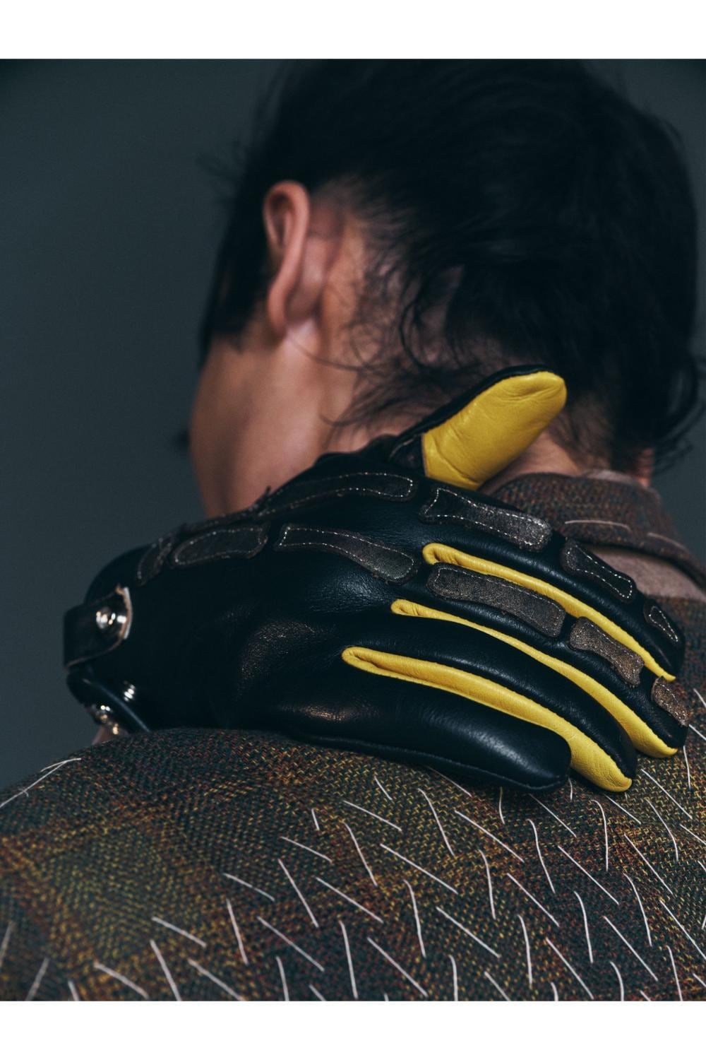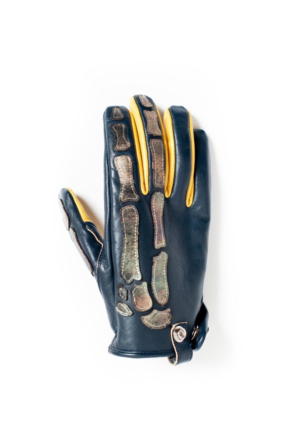 手の骨格を模したX線アートを、黒のレザーに銀の箔押しで表現した、唯一無二のレザーグローブ。
