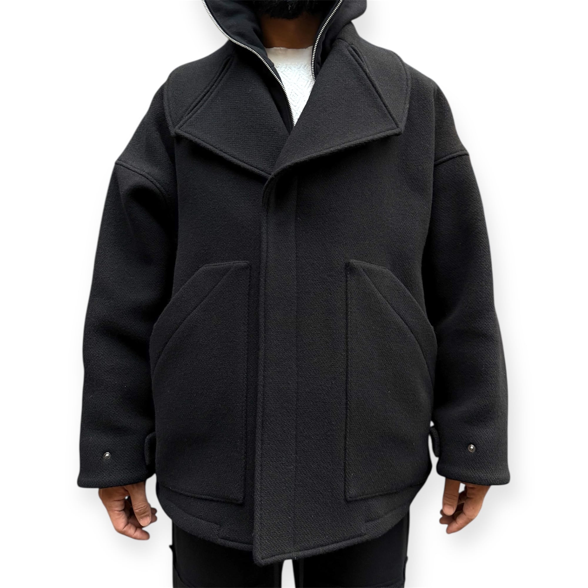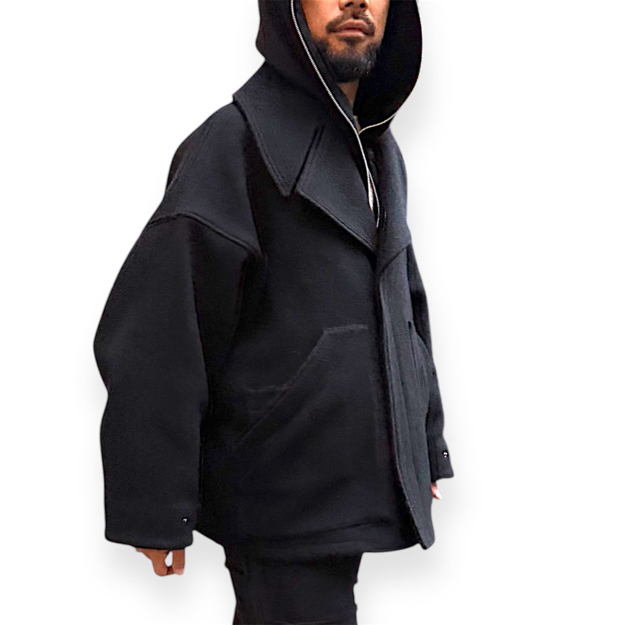 シルエットはショート丈でも身幅から肩周りの広さを計算して大きくしつつも違和感なく着用できるシルエットになります。独特のラインは生地との相性を計算して作られた最高のシルエットを実現。着用時のストレスもなく幅広い方にお勧めできる1着になります。