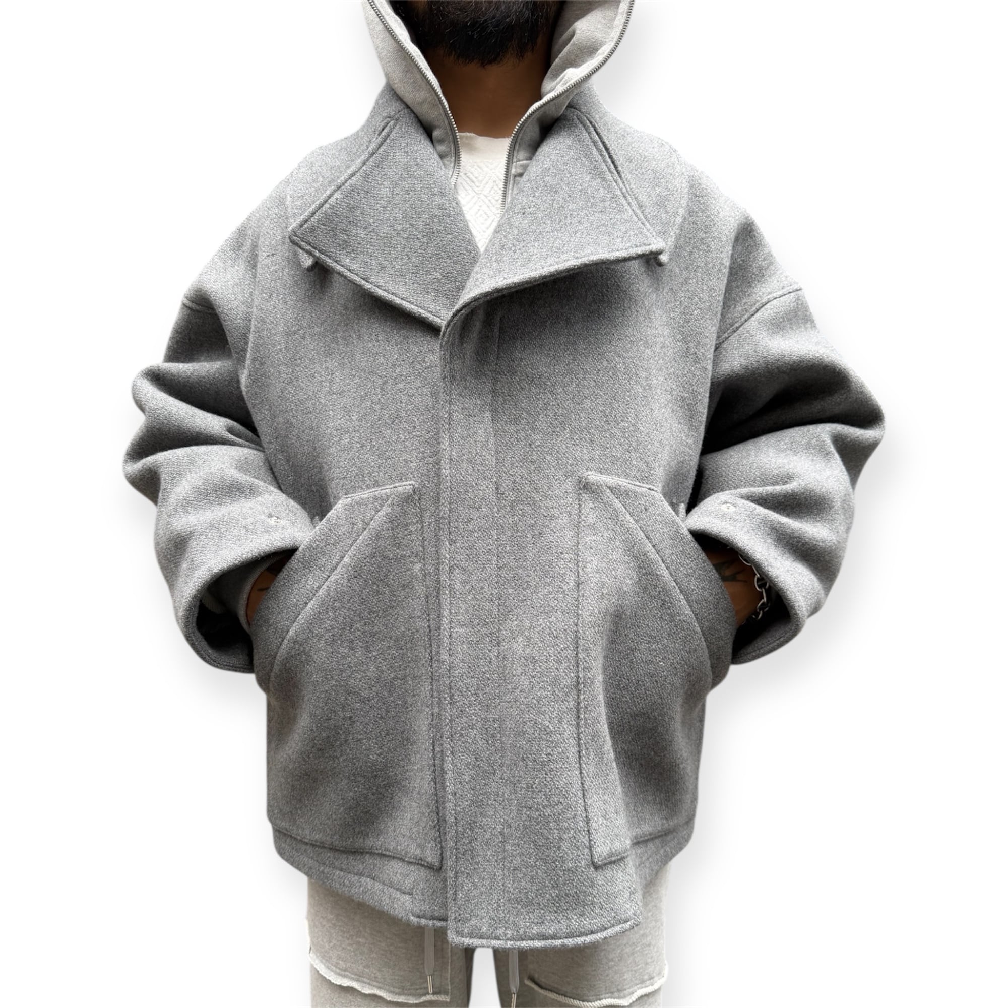 シルエットはショート丈でも身幅から肩周りの広さを計算して大きくしつつも違和感なく着用できるシルエットになります。独特のラインは生地との相性を計算して作られた最高のシルエットを実現。着用時のストレスもなく幅広い方にお勧めできる1着になります。