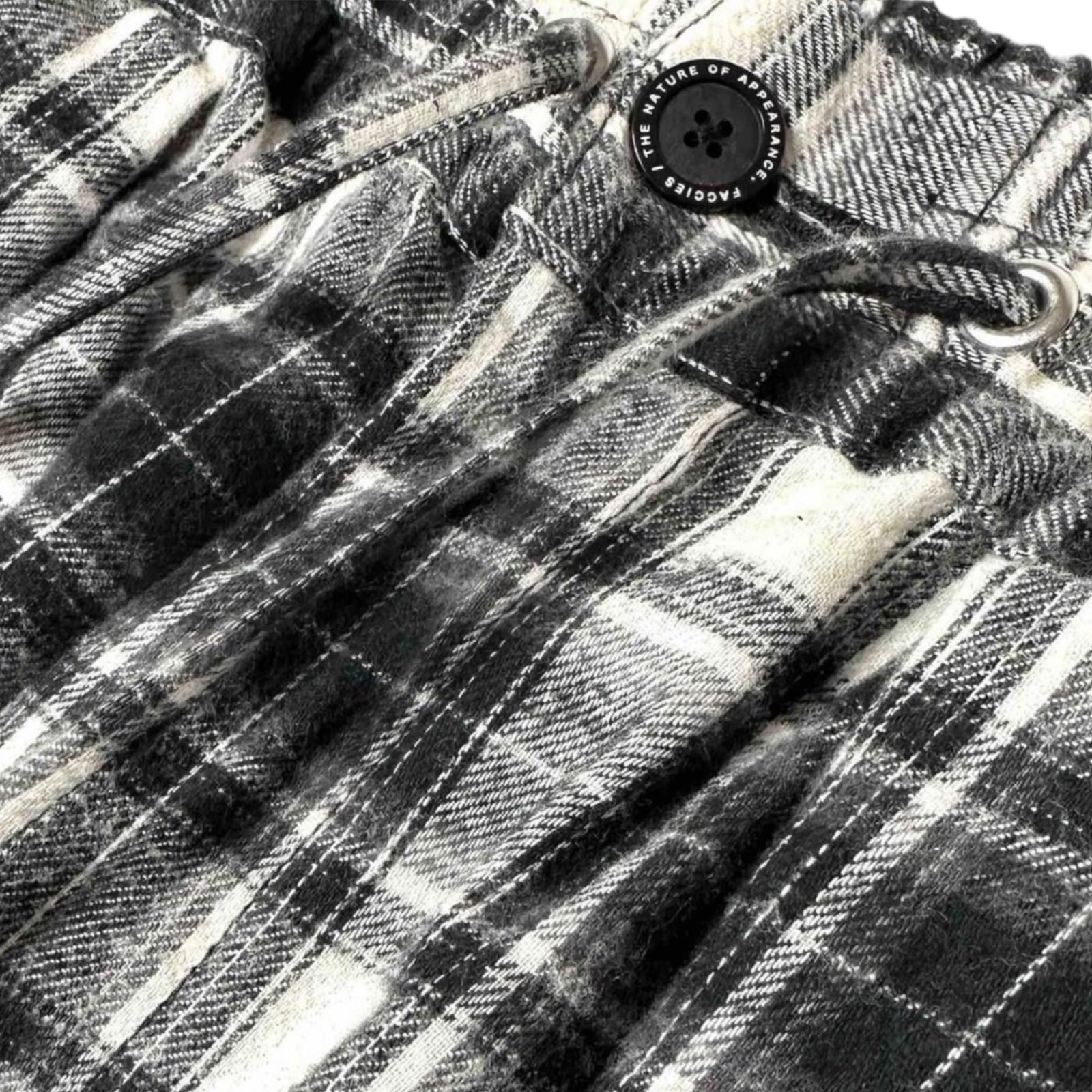 シルエットはタック入りのワイドタイプ。ストレスなく緩く履けるようウエストは平ゴム入りのイージータイプ。
