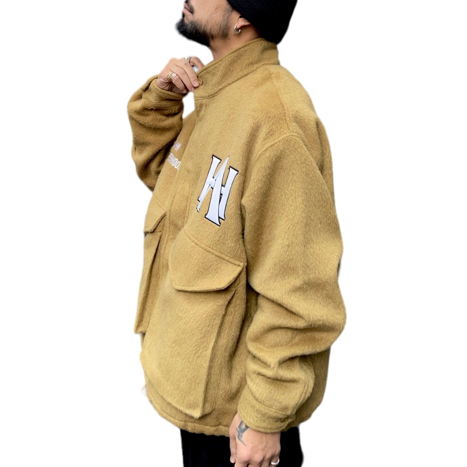 毛足が長いので無地でも表情が豊かで、前身ごろのポケットやスタンドカラーもポイントのブルゾン。